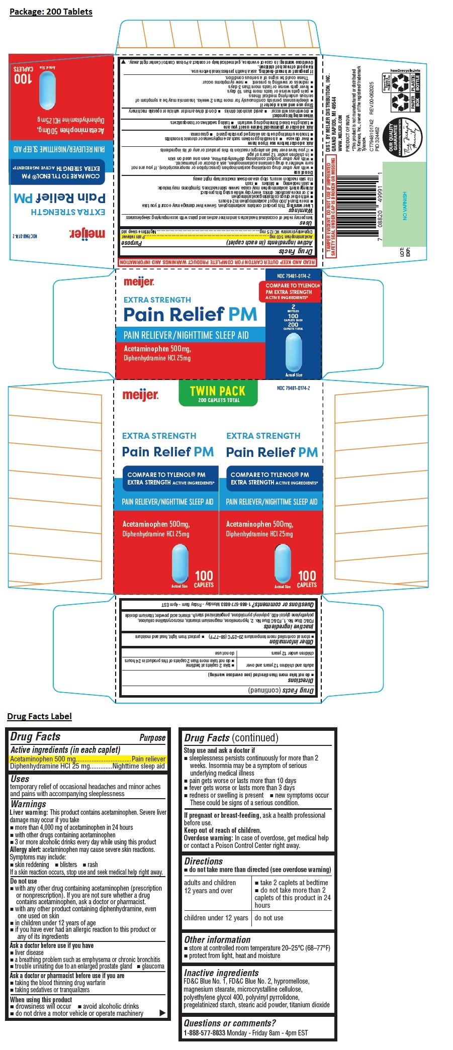 The following 2 images provide visual information about the product associated with Meijer Extra Strength Pain Relief Pm Caplet NDC 79481-0174 by Meijer, Inc., such as packaging, labeling, and the appearance of the drug itself. This resource could be helpful for medical professionals, pharmacists, and patients seeking to verify medication information and ensure they have the correct product.