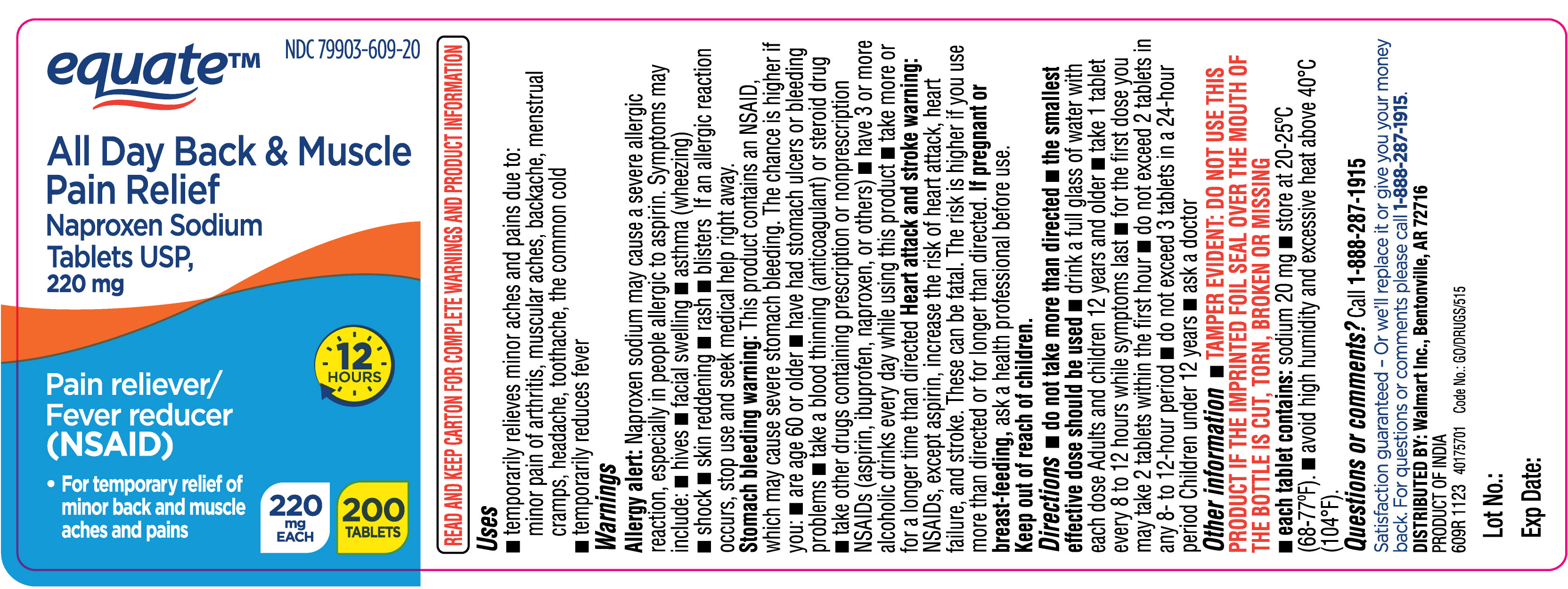 The following 4 images provide visual information about the product associated with All Day Back And Muscle Pain Relief NDC 79903-609 by Walmart Inc., such as packaging, labeling, and the appearance of the drug itself. This resource could be helpful for medical professionals, pharmacists, and patients seeking to verify medication information and ensure they have the correct product.