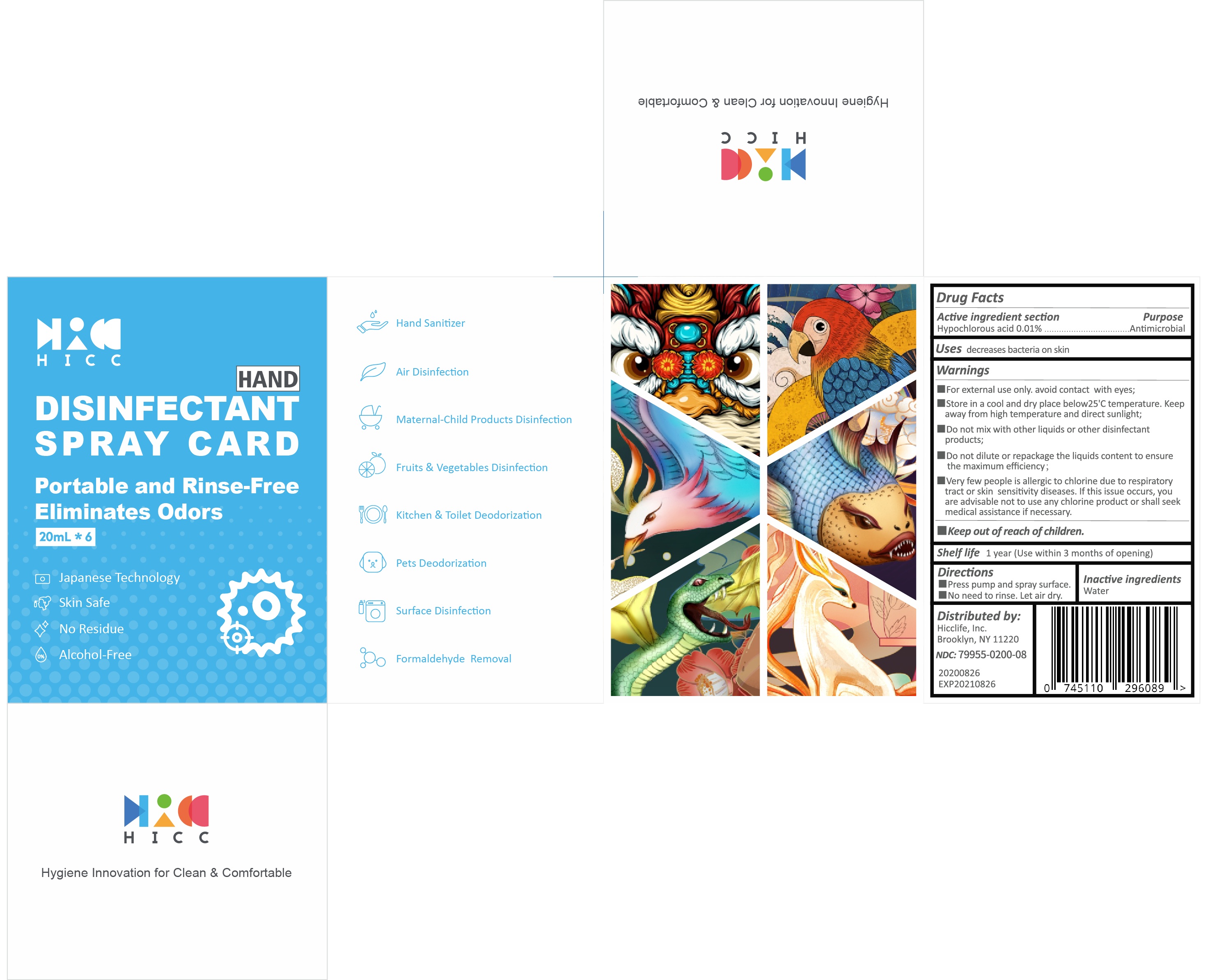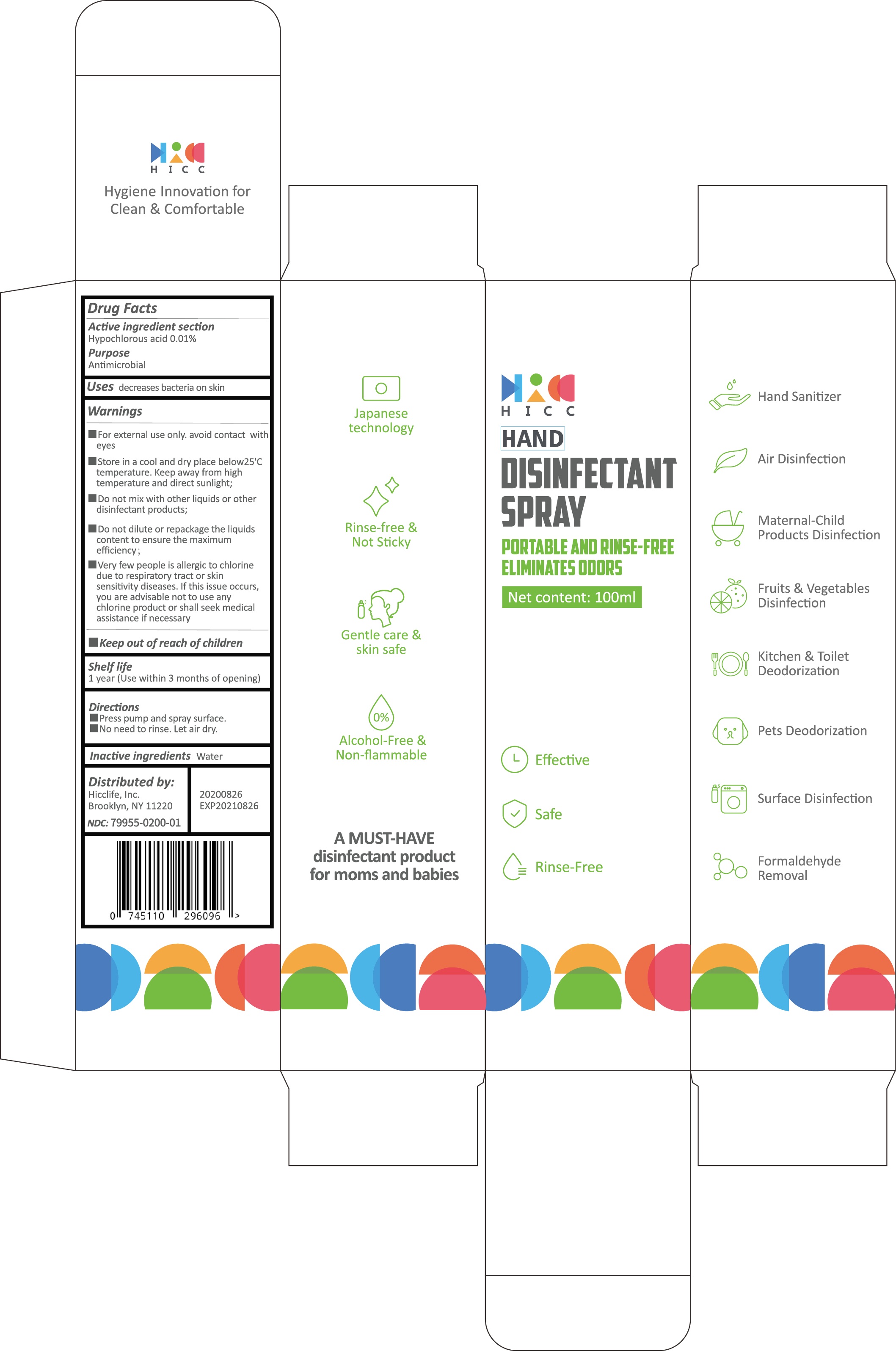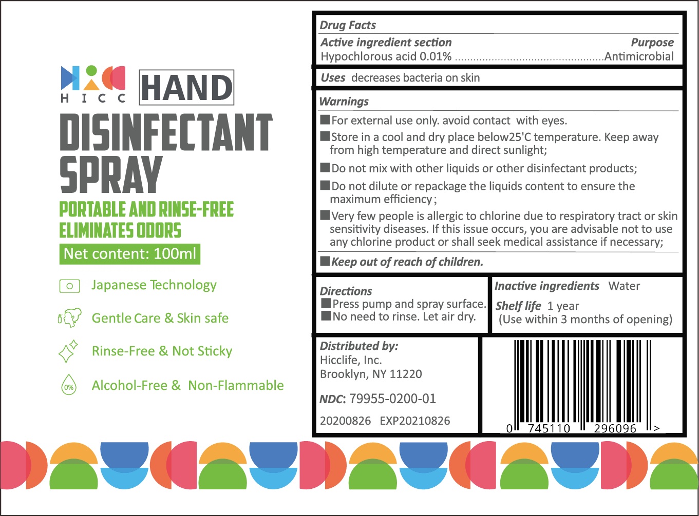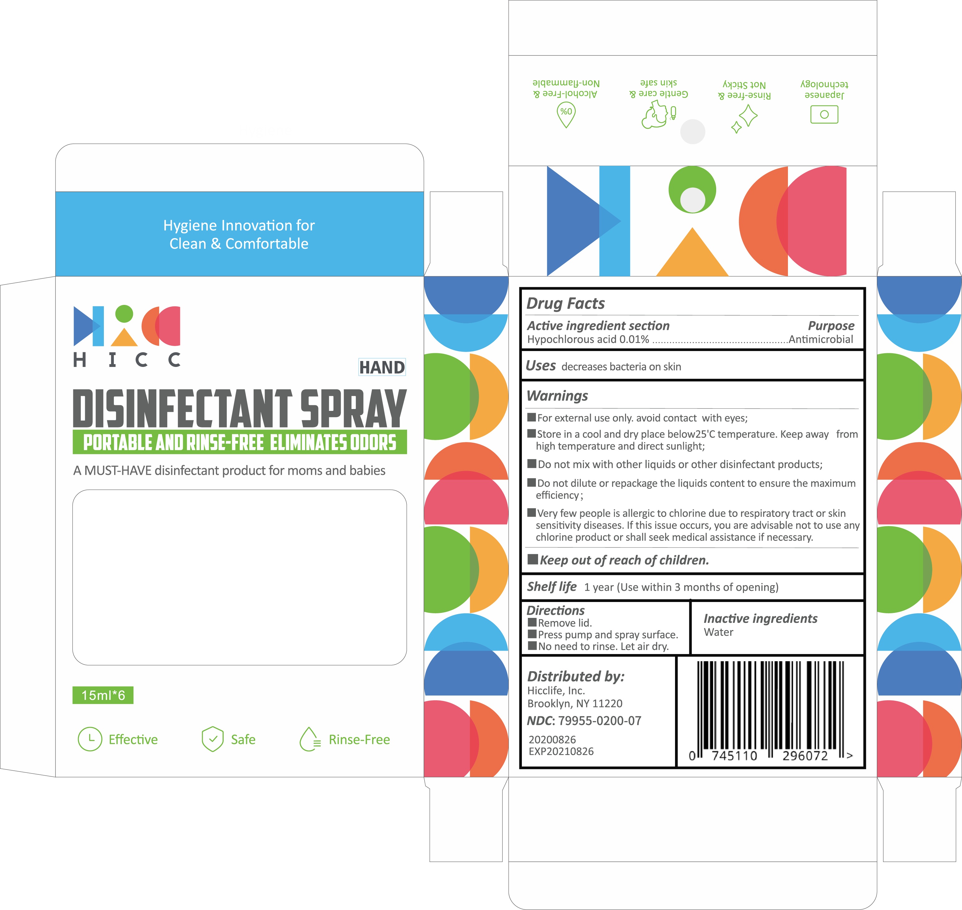 This is a description of a disinfectant spray that is portable and rinse-free. It contains hypochlorous acid which decreases bacteria on the skin. The product can eliminate odors and is suitable for moms and babies. The spray must be kept out of reach of children and is not to be mixed with other liquids. The product shelf life is one year, and it should be used within three months of opening. The distributor is Hicclife, Inc. and it is based in Brooklyn, NY 11220.*