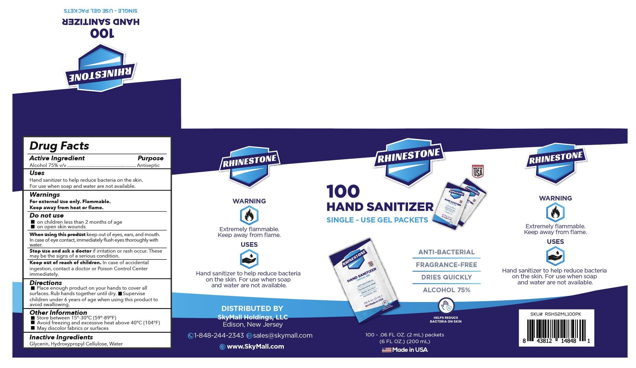 This is a description of a hand sanitizer product with drug facts, usage instructions, and active and inactive ingredients. The product is a topical gel that is fragrance-free, dries quickly, and contains 75% alcohol to help reduce bacteria on the skin. The product is intended for external use only and is flammable, so it should be kept away from heat or flames. It should not be used on children less than 2 months of age or on open skin wounds. In case of eye contact, the affected area should be flushed with water immediately. The product is distributed by SkyMall Holdings in Edison, New Jersey, and contains 0.6 fl oz (2 mL).*