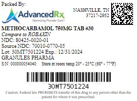 Methocarbamol 750mg Tab Qty 30 NDC 80425 0020
