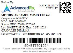 Methocarbamol 750mg Tab Qty 60 NDC 80425 0020