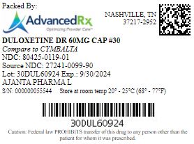 Duloxetine DR 60mg Cap Qty 30 NDC 80425 0119