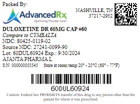 Duloxetine DR 60mg Cap Qty 60 NDC 80425 0119
