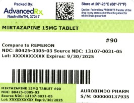 The following 4 images provide visual information about the product associated with Mirtazapine NDC 80425-0305 by Advanced Rx Pharmacy Of Tennessee, Llc, such as packaging, labeling, and the appearance of the drug itself. This resource could be helpful for medical professionals, pharmacists, and patients seeking to verify medication information and ensure they have the correct product.