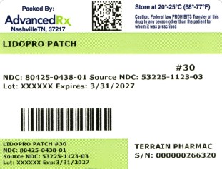 The following image provide visual information about the product associated with Lidopro Patch NDC 80425-0438 by Advanced Rx Of Tennessee, Llc, such as packaging, labeling, and the appearance of the drug itself. This resource could be helpful for medical professionals, pharmacists, and patients seeking to verify medication information and ensure they have the correct product.