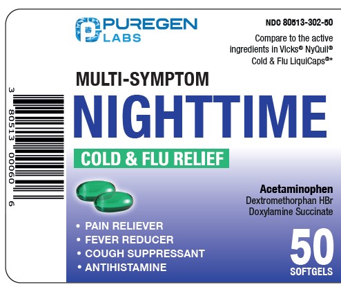 The following 3 images provide visual information about the product associated with Nighttime Cold And Flu Relief Softgels Multi-symptom NDC 80513-302 by Advanced Rx Llc, such as packaging, labeling, and the appearance of the drug itself. This resource could be helpful for medical professionals, pharmacists, and patients seeking to verify medication information and ensure they have the correct product.