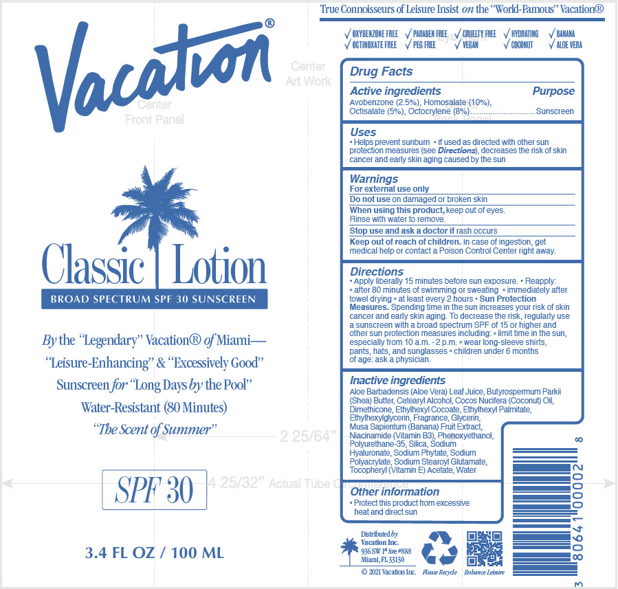Vacation Classic Broad Spectrum Spf 30 Sunscreen Product Label