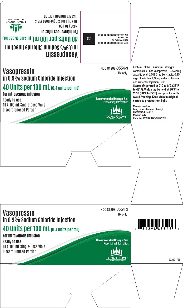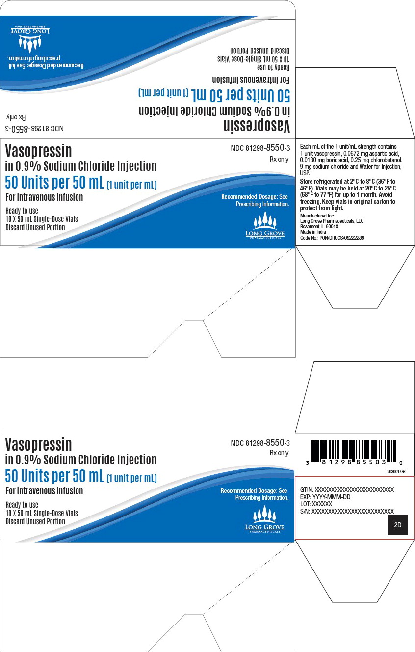 The following 4 images provide visual information about the product associated with Vasopressin In 0.9% Sodium Chloride NDC 81298-8552 by Long Grove Pharmaceuticals, Llc, such as packaging, labeling, and the appearance of the drug itself. This resource could be helpful for medical professionals, pharmacists, and patients seeking to verify medication information and ensure they have the correct product.