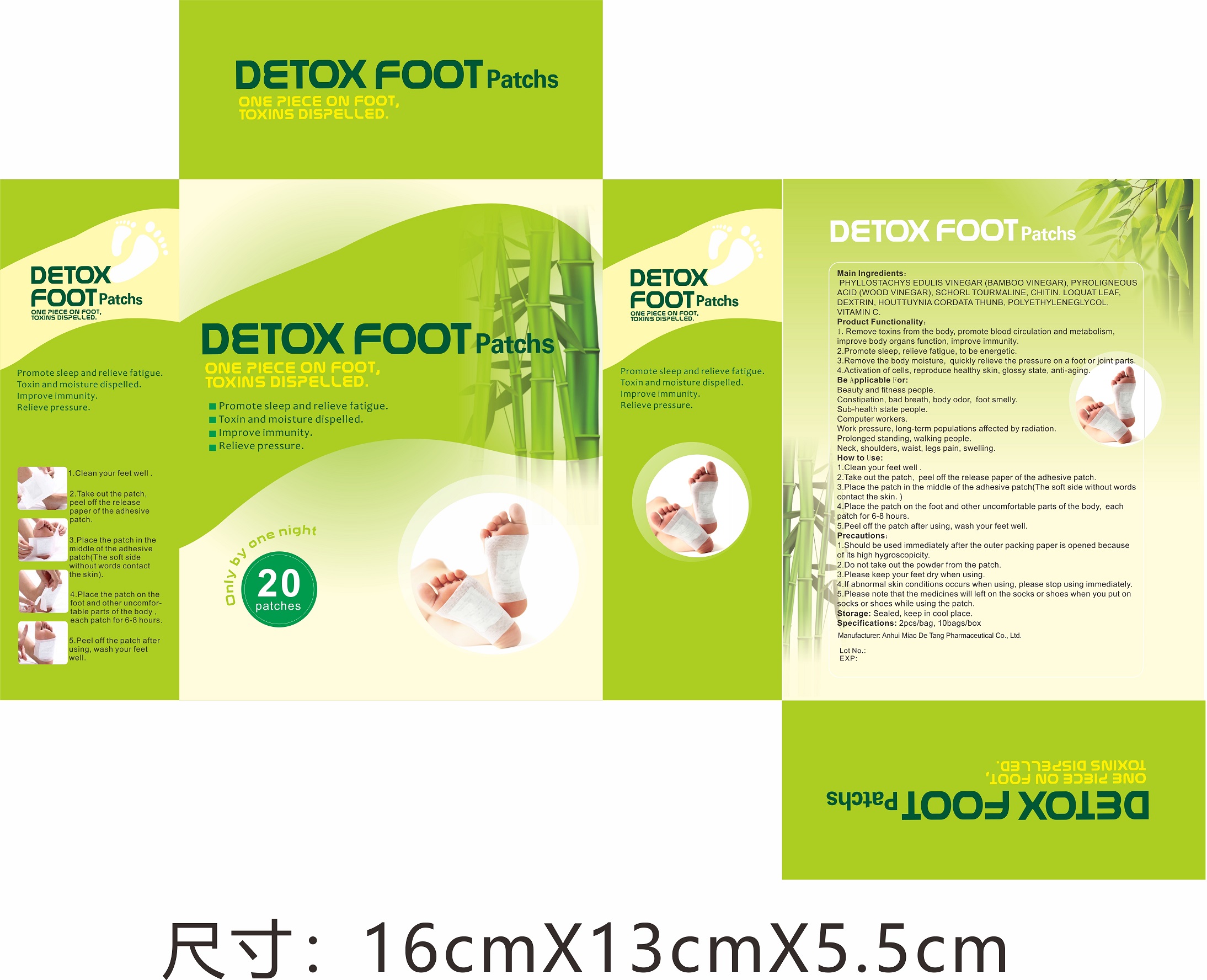 The following image provide visual information about the product associated with Detox Foot Patch NDC 81484-101 by Anhui Miao De Tang Pharmaceutical Co., Ltd., such as packaging, labeling, and the appearance of the drug itself. This resource could be helpful for medical professionals, pharmacists, and patients seeking to verify medication information and ensure they have the correct product.