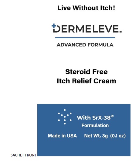 Live Without Itch with Dermeleve, a steroid-free cream specially formulated to relieve itching with its SRX-38™ technology. This itch relief cream comes in a sachet with a net weight of 3g (0.1oz) and is made in the USA.*