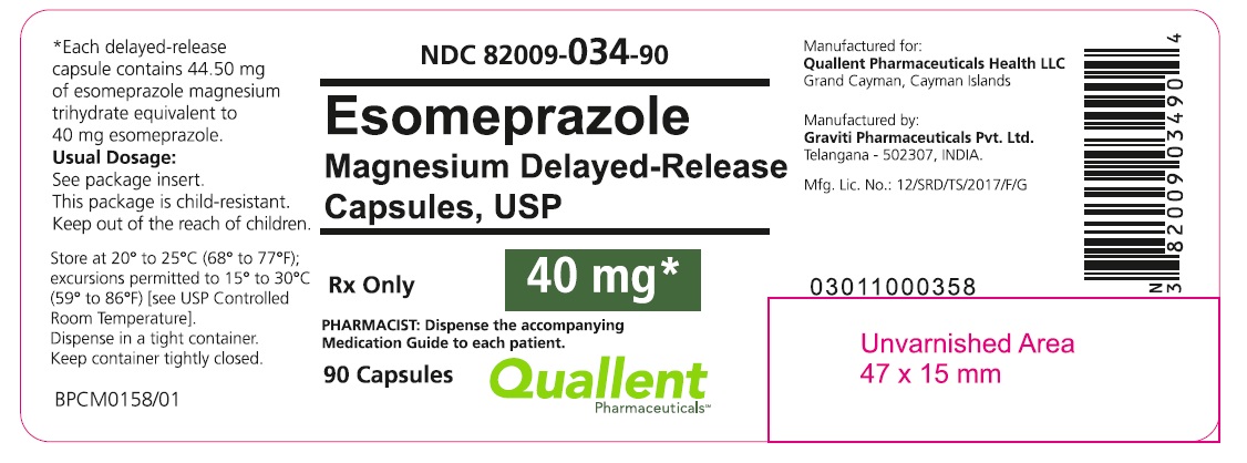 This is a bulk package of Esomeprazole Magnesium Delayed-Release capsules with 20 mg strength. The capsules contain 22.25 mg of esomeprazole magnesium trihydrate. It is not intended for dispensing, and the usual dosage should be checked from the package insert. It should be stored at 20° to 25°C. The product is manufactured by Quallent Pharmaceuticals Health LLC and marketed under NDC 82009-033-10. The product label contains information about the manufacturer and storage details. The accompanying Medication Guide should be dispensed by the pharmacist to each patient.*