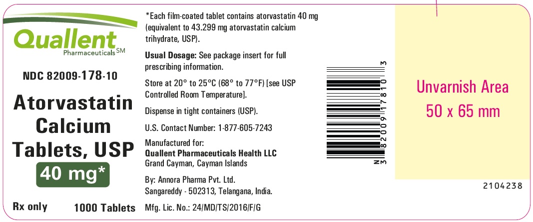The following 8 images provide visual information about the product associated with Atorvastatin Calcium NDC 82009-178 by Quallent Pharmaceuticals Health Llc, such as packaging, labeling, and the appearance of the drug itself. This resource could be helpful for medical professionals, pharmacists, and patients seeking to verify medication information and ensure they have the correct product.