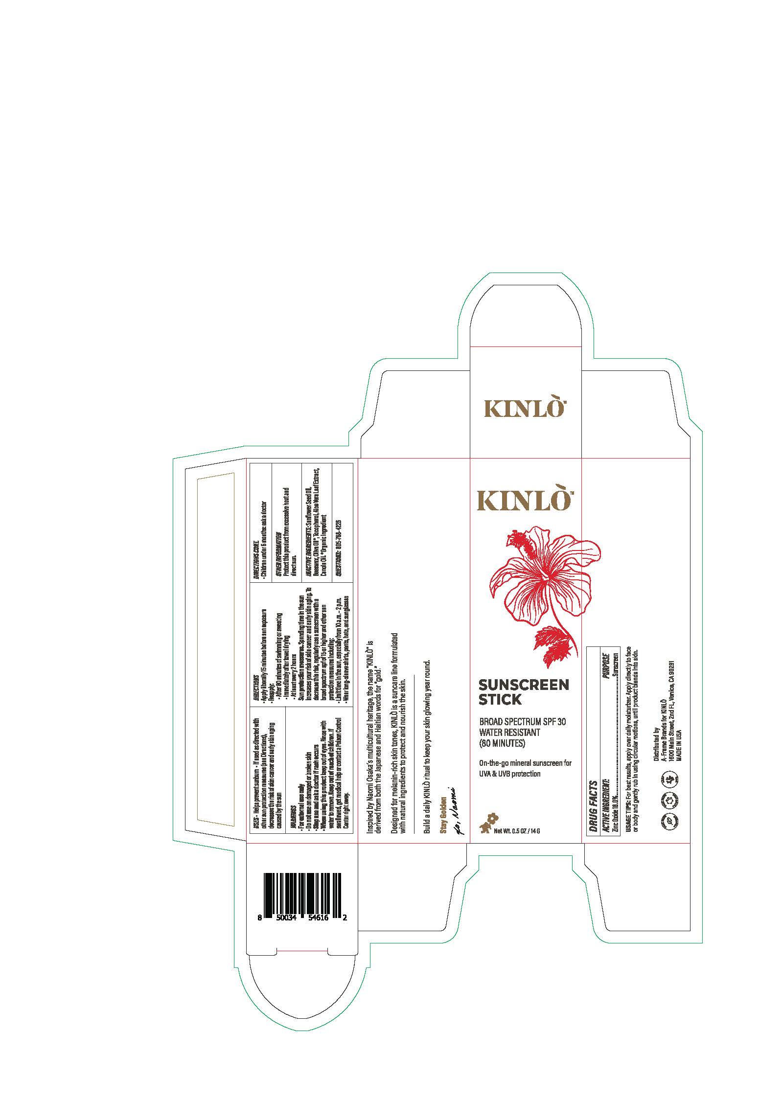 The following image provide visual information about the product associated with Kinlo Sunscreen Stick Broad Spectrum Spf 30 NDC 82184-5140 by A-frame Sunco Inc, such as packaging, labeling, and the appearance of the drug itself. This resource could be helpful for medical professionals, pharmacists, and patients seeking to verify medication information and ensure they have the correct product.