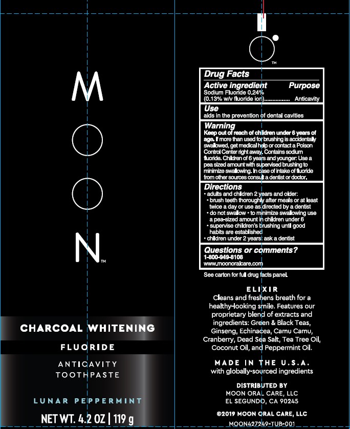 The following 2 images provide visual information about the product associated with Moon Charcoal Whitening Anticavity NDC 82214-003 by Moon Oral Care, Llc, such as packaging, labeling, and the appearance of the drug itself. This resource could be helpful for medical professionals, pharmacists, and patients seeking to verify medication information and ensure they have the correct product.