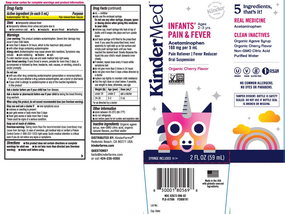 The following image provide visual information about the product associated with Infants Pain And Fever NDC 82673-096 by Kinderfarms, Llc, such as packaging, labeling, and the appearance of the drug itself. This resource could be helpful for medical professionals, pharmacists, and patients seeking to verify medication information and ensure they have the correct product.
