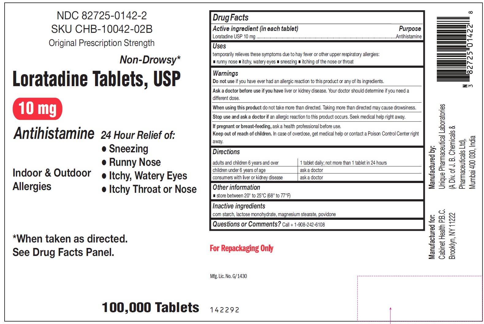 - PACKAGE LABELING: 82725-0142-1