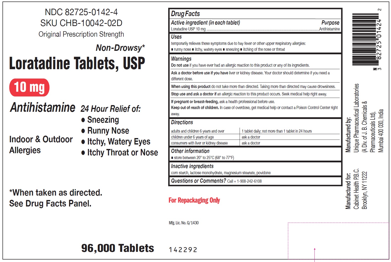 Package Labeling: 82725-0142-1