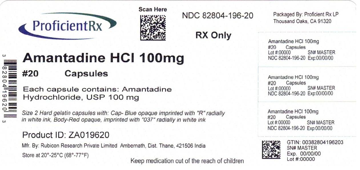 Amantadine Hydrochloride Cap, USP 100 mg - NDC-82804-196-20 - 20 Capsules Label