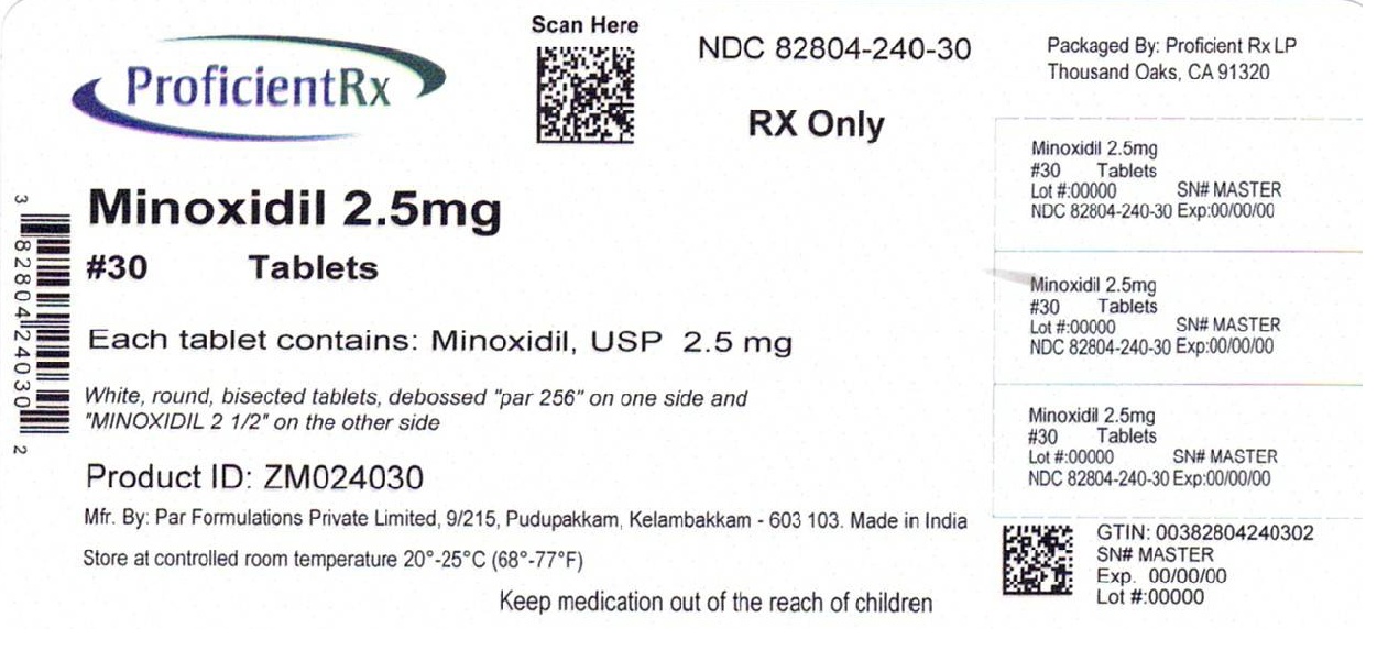 The following 12 images provide visual information about the product associated with Minoxidil NDC 82804-240 by Proficient Rx Lp, such as packaging, labeling, and the appearance of the drug itself. This resource could be helpful for medical professionals, pharmacists, and patients seeking to verify medication information and ensure they have the correct product.