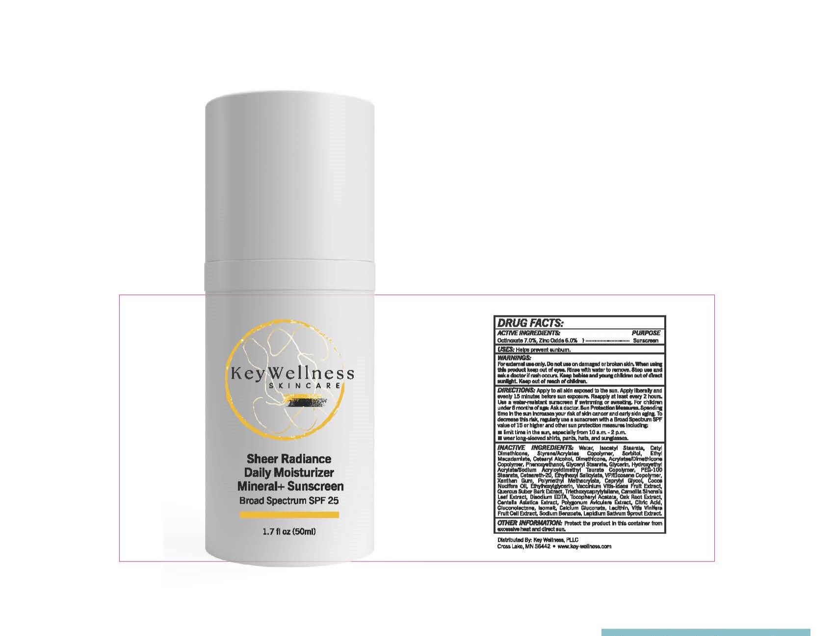 The following image provide visual information about the product associated with Sheer Radiance Daily Moisturizer Mineral Sunscreen Broad Spectrum Spf 25 NDC 82813-2650 by Key Wellness, Pllc., such as packaging, labeling, and the appearance of the drug itself. This resource could be helpful for medical professionals, pharmacists, and patients seeking to verify medication information and ensure they have the correct product.