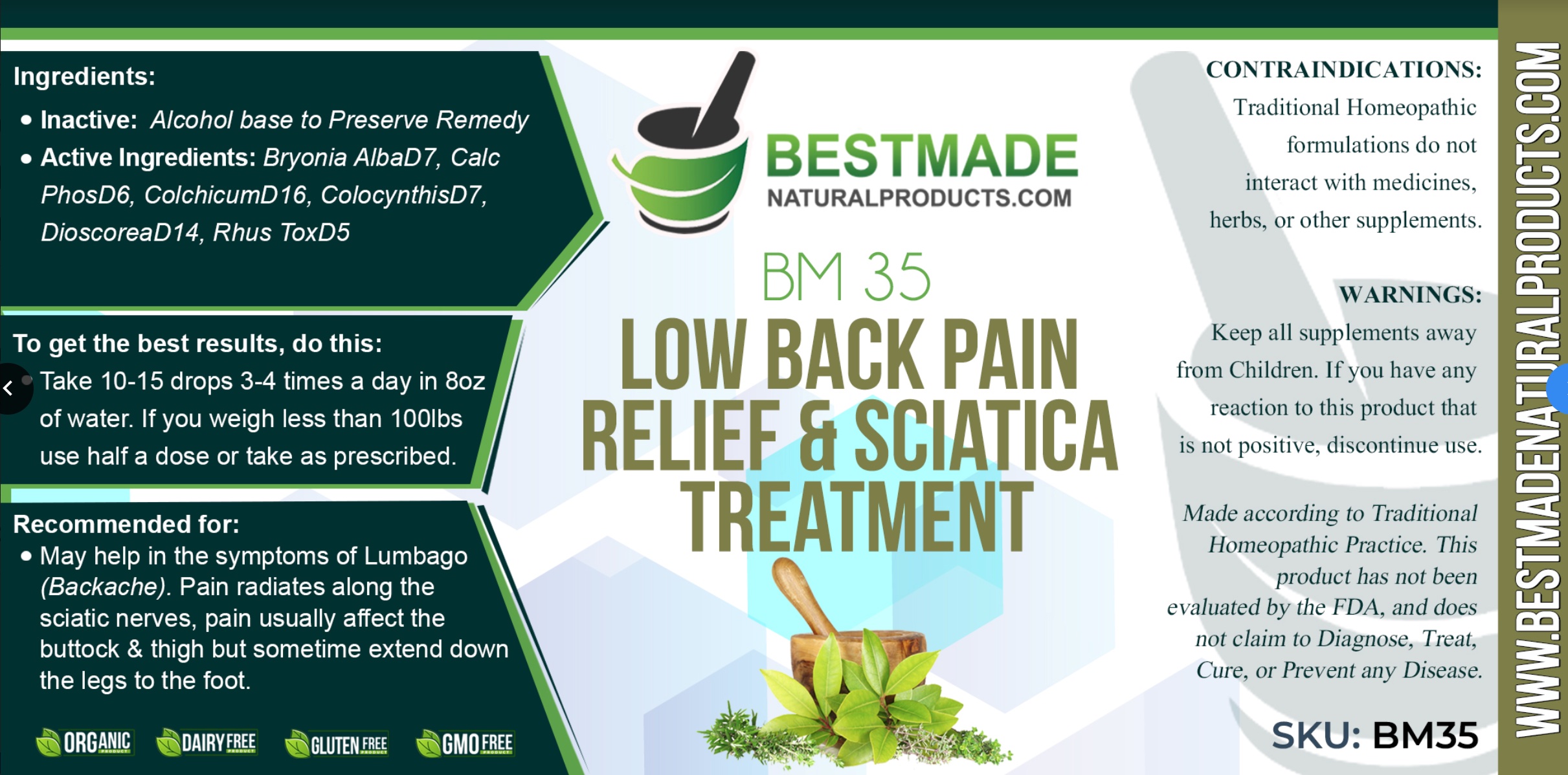 The following image provide visual information about the product associated with Bestmade Natural Products Bm35 NDC 82969-2035 by Bestmade Natural Products, such as packaging, labeling, and the appearance of the drug itself. This resource could be helpful for medical professionals, pharmacists, and patients seeking to verify medication information and ensure they have the correct product.