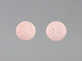 This is a medication label for Lisinopril 10mg tablets. It contains information about the manufacturer, the quantity, the lot number, and storage instructions. It also includes a warning to keep the medication out of reach of children and not to use it while breastfeeding or pregnant.*