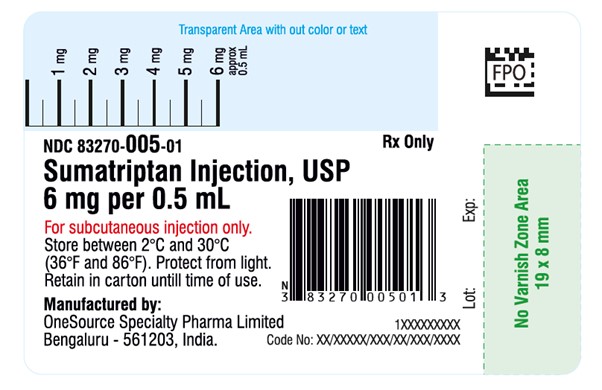 The following 6 images provide visual information about the product associated with Sumatriptan NDC 83270-005 by Onesource Specialty Pharma Limited, such as packaging, labeling, and the appearance of the drug itself. This resource could be helpful for medical professionals, pharmacists, and patients seeking to verify medication information and ensure they have the correct product.