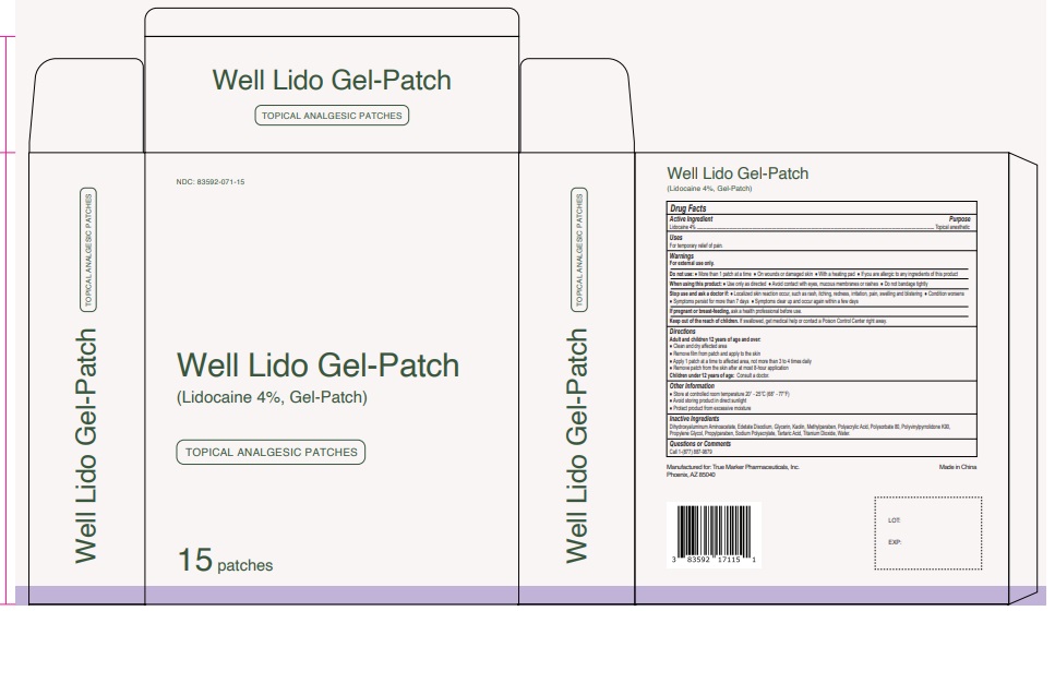 The following image provide visual information about the product associated with Well Lido Gel Patch NDC 83592-071 by True Marker Pharmaceuticals, Inc., such as packaging, labeling, and the appearance of the drug itself. This resource could be helpful for medical professionals, pharmacists, and patients seeking to verify medication information and ensure they have the correct product.