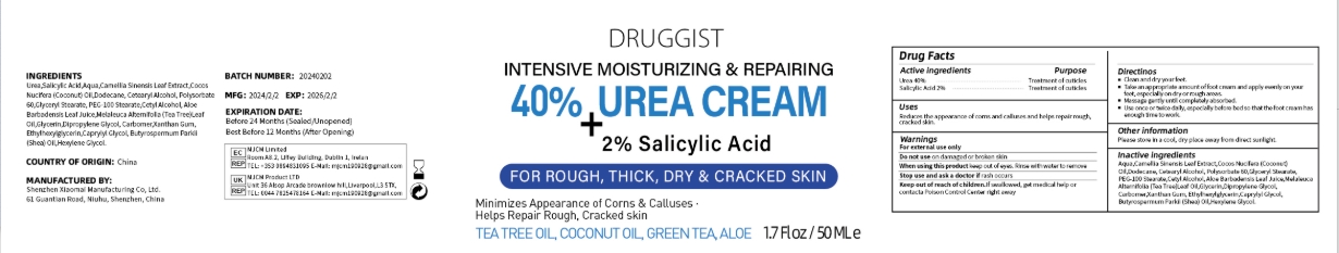 This product is an intensive moisturizing and repairing cream with 40% urea and 2% salicylic acid. It is designed to minimize the appearance of corns and calluses while helping to repair rough, cracked skin. Contains ingredients like tea tree oil, coconut oil, green tea, and aloe. Each tube contains 17 fl oz or 50 ml of the cream."*