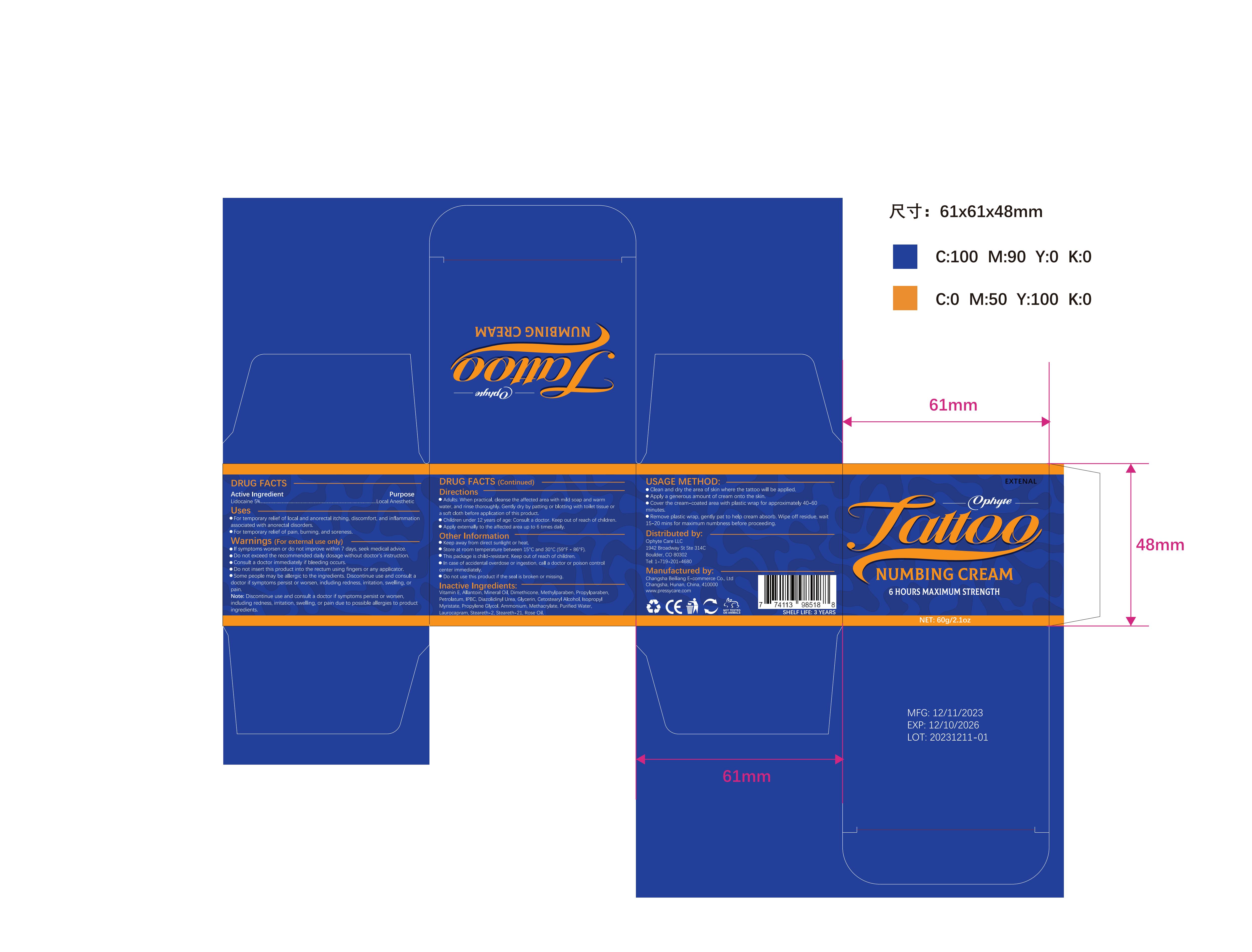 The following 4 images provide visual information about the product associated with Ophyte Tattoo Numbing Cream NDC 83887-002 by Changsha Beiliang E-commerce Co., Ltd, such as packaging, labeling, and the appearance of the drug itself. This resource could be helpful for medical professionals, pharmacists, and patients seeking to verify medication information and ensure they have the correct product.