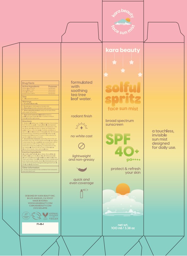 The following image provide visual information about the product associated with Solful Spritz Face Sun Mist NDC 83918-002 by Kara Beauty Inc, such as packaging, labeling, and the appearance of the drug itself. This resource could be helpful for medical professionals, pharmacists, and patients seeking to verify medication information and ensure they have the correct product.