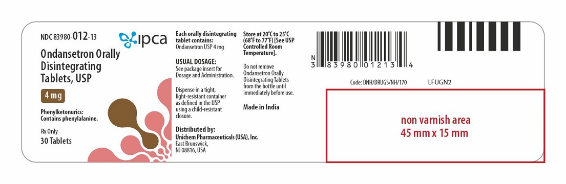 The following 3 images provide visual information about the product associated with Ondansetron NDC 83980-012 by Ipca Laboratories Limited, such as packaging, labeling, and the appearance of the drug itself. This resource could be helpful for medical professionals, pharmacists, and patients seeking to verify medication information and ensure they have the correct product.