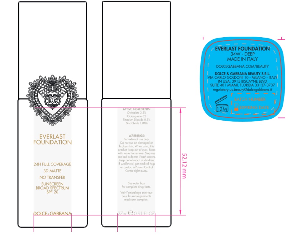 The following 3 images provide visual information about the product associated with Dolce And Gabbana Everlast Foundation Spf 20 34w Deep NDC 84003-034 by Dolce & Gabbana Beauty S.r.l, such as packaging, labeling, and the appearance of the drug itself. This resource could be helpful for medical professionals, pharmacists, and patients seeking to verify medication information and ensure they have the correct product.