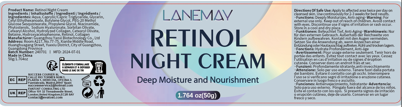Retinol Night Cream Product Label