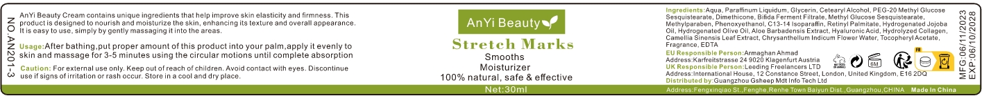 The following 3 images provide visual information about the product associated with Anyi Beauty Stretch Marks Cream NDC 84037-0013 by Guangzhou Zhicunxiu Cosmetics Co., Ltd, such as packaging, labeling, and the appearance of the drug itself. This resource could be helpful for medical professionals, pharmacists, and patients seeking to verify medication information and ensure they have the correct product.