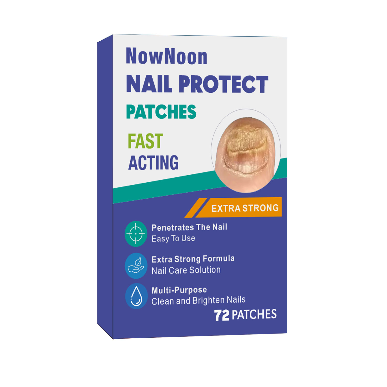 This is a description for a nail care product called "Nail Protect" by NowNoon. It is an easy-to-use solution with an extra strong formula designed to improve the appearance of nails. This multi-purpose product is intended to clean, brighten, and protect your nails. Additionally, it includes patches for nail care.*