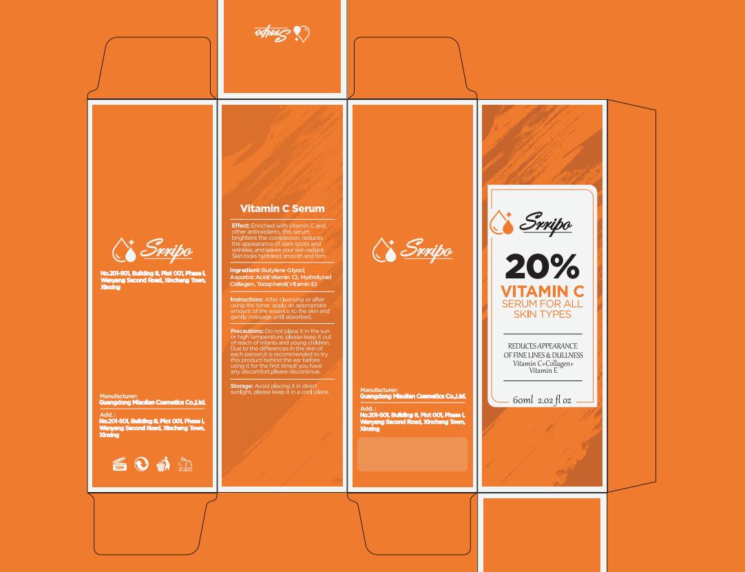 The following image provide visual information about the product associated with Srripo 20% Vitamin C Serum NDC 84507-029 by Guangdong Miaolian Cosmetics Co., Ltd., such as packaging, labeling, and the appearance of the drug itself. This resource could be helpful for medical professionals, pharmacists, and patients seeking to verify medication information and ensure they have the correct product.