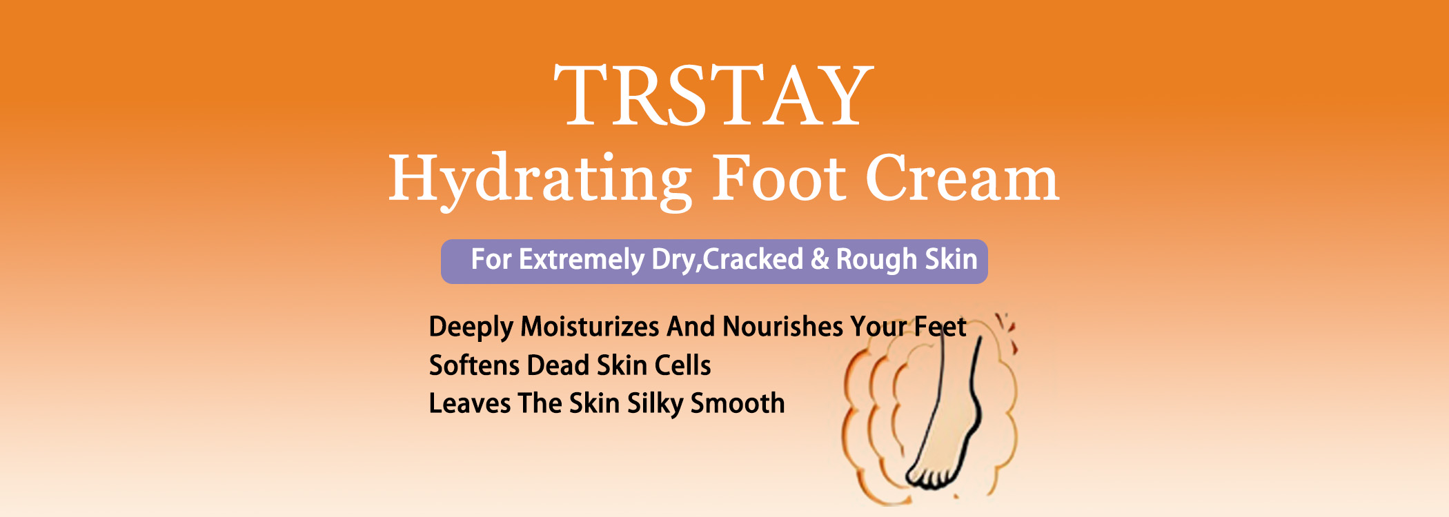 This is a description for TRSTAY Hydrating Foot Cream, designed for extremely dry, cracked, and rough skin. It deeply moisturizes, nourishes, and softens dead skin cells, leaving the skin silky smooth.*