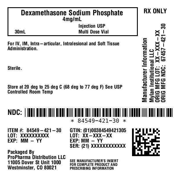 The following 2 images provide visual information about the product associated with Dexamethasone Sodium Phosphate NDC 84549-421 by Propharma Distribution, such as packaging, labeling, and the appearance of the drug itself. This resource could be helpful for medical professionals, pharmacists, and patients seeking to verify medication information and ensure they have the correct product.