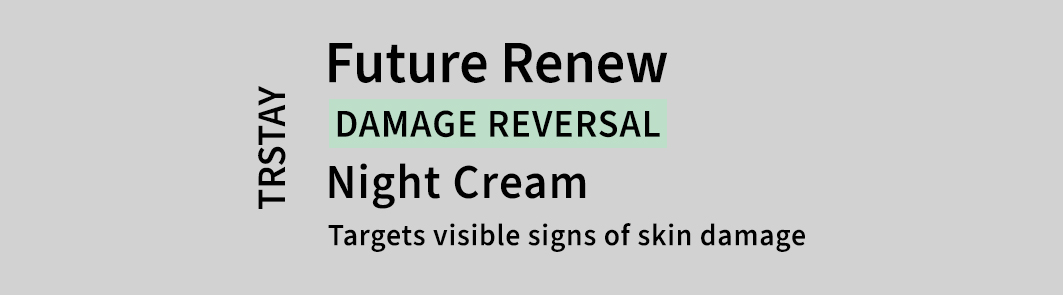 This text describes a night cream called "TRSTAY Future Renew Damage Reversal." It is formulated to target visible signs of skin damage, providing repair and renewal benefits for the skin. This night cream is likely designed to improve skin texture, tone, and overall appearance while you sleep.*