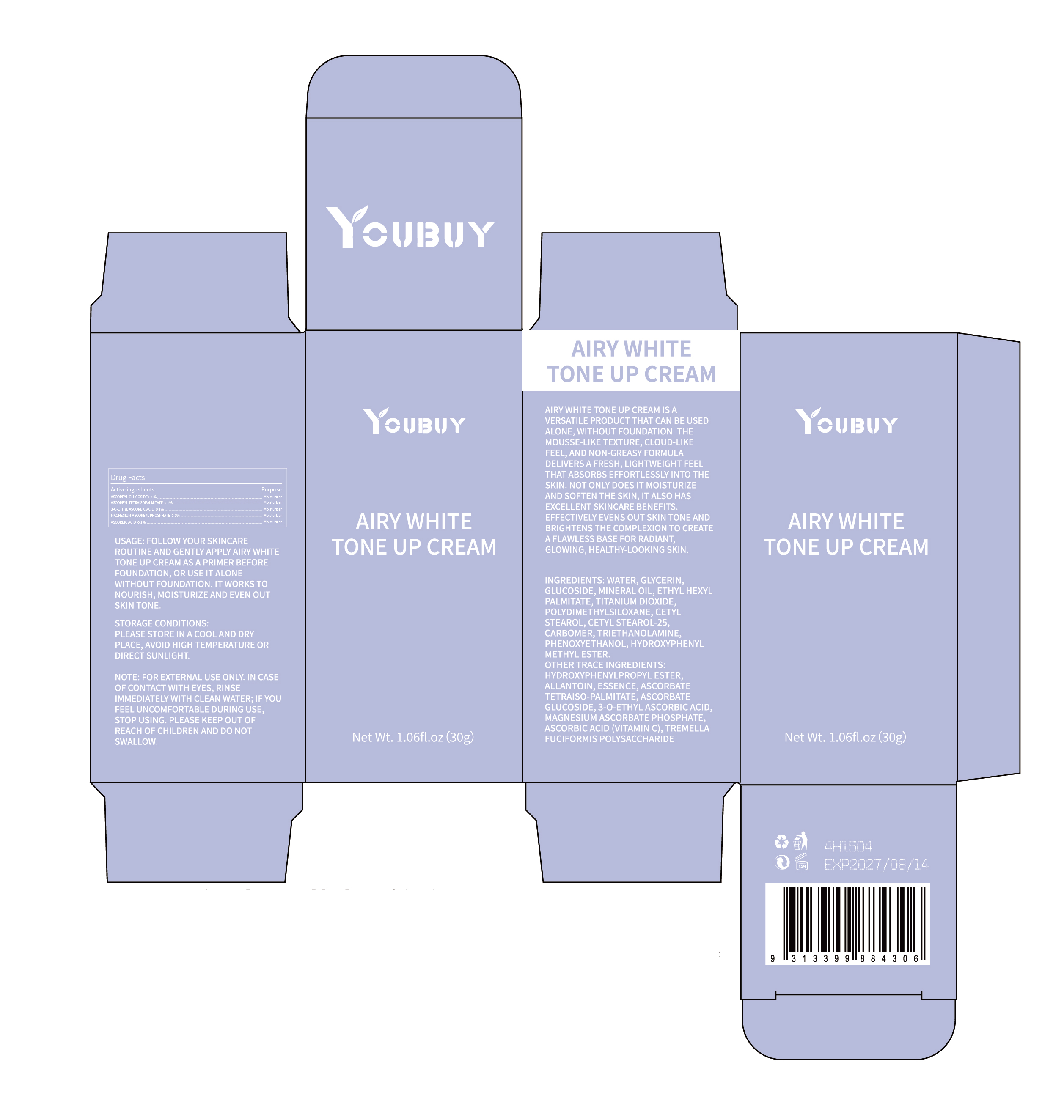 The following image provide visual information about the product associated with Youbuy Airy White Tone Up Cream NDC 84712-027 by Guangdong Youbaijia Cosmetic Industry Co., Ltd, such as packaging, labeling, and the appearance of the drug itself. This resource could be helpful for medical professionals, pharmacists, and patients seeking to verify medication information and ensure they have the correct product.