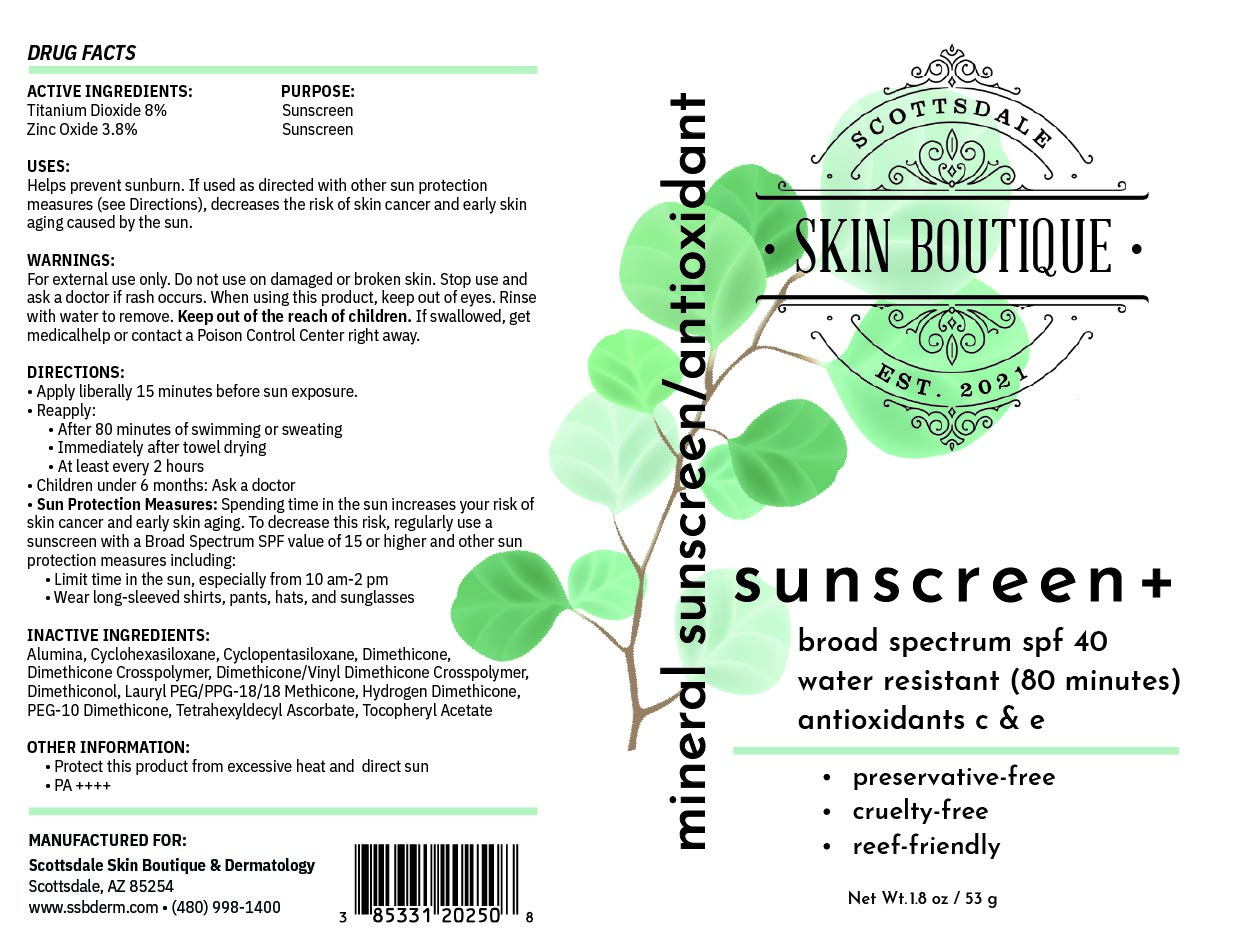 The following image provide visual information about the product associated with Sunscreen NDC 85331-202 by Scottsdale Skin Boutique Aesthetics Pllc, such as packaging, labeling, and the appearance of the drug itself. This resource could be helpful for medical professionals, pharmacists, and patients seeking to verify medication information and ensure they have the correct product.