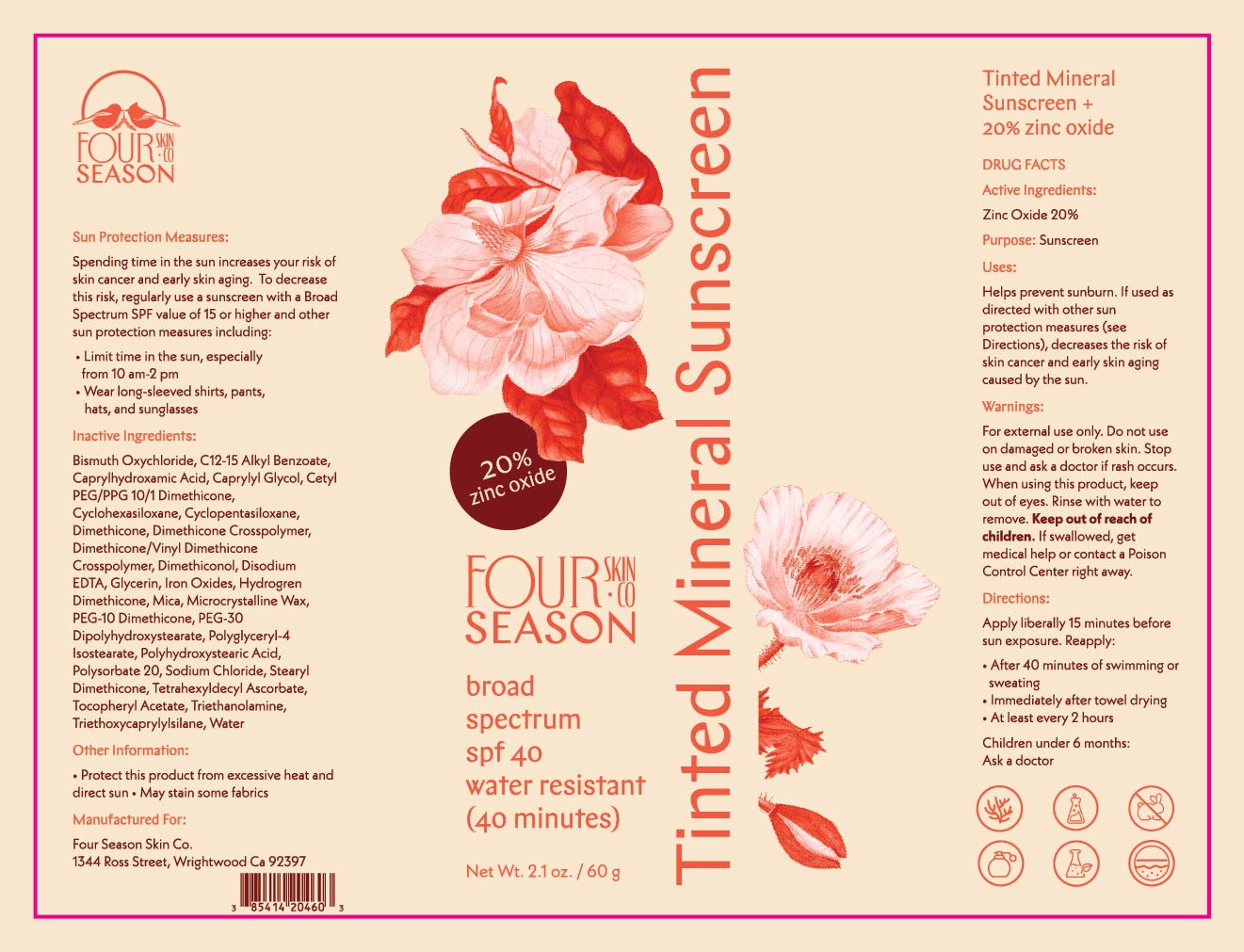 The text provides information about a broad-spectrum SPF 40 water-resistant tinted mineral sunscreen with active ingredient Zinc Oxide. It includes directions for use, warnings, and protective measures against sun exposure to prevent skin cancer and early skin aging. Other details include inactive ingredients, manufacturer details, and storage instructions.*