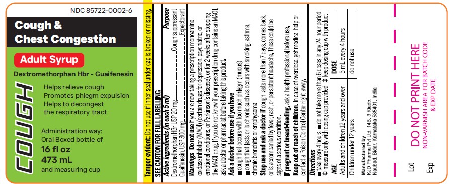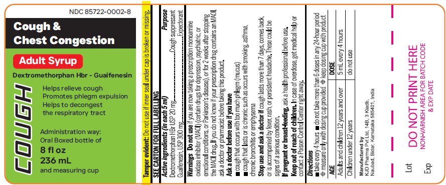 The following 3 images provide visual information about the product associated with Dextromethorphan Hydrobromide And Guaifenesin NDC 85722-0002 by Kjd Pharma Private Limited, such as packaging, labeling, and the appearance of the drug itself. This resource could be helpful for medical professionals, pharmacists, and patients seeking to verify medication information and ensure they have the correct product.
