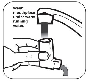 This text provides simple and straightforward instructions for cleaning a mouthpiece. It suggests washing the mouthpiece under warm running water to maintain hygiene and cleanliness.*