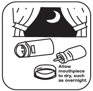 This is a description for caring for a mouthpiece. It suggests that the mouthpiece should be left to dry, such as overnight, after use.*
