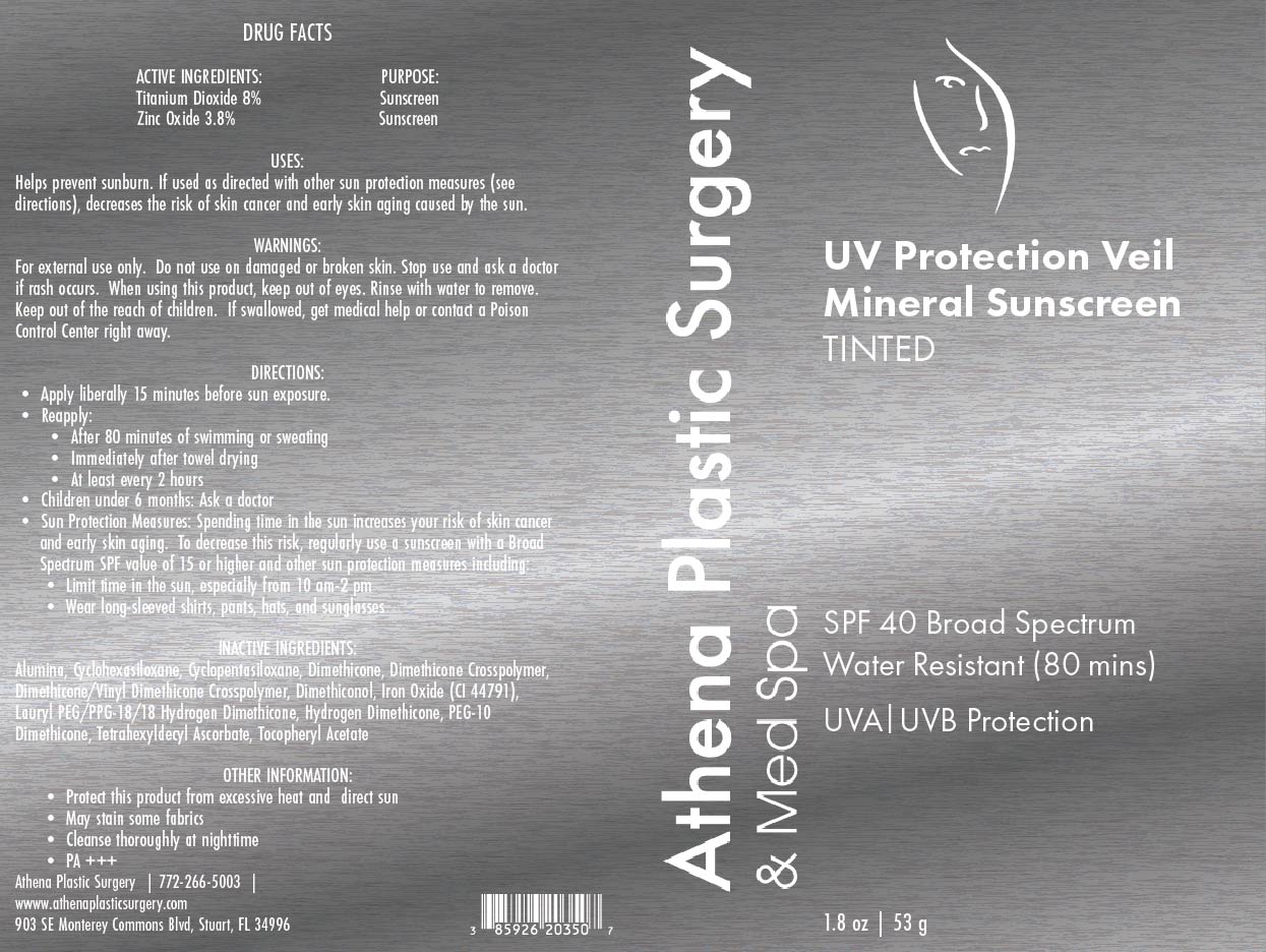 The following image provide visual information about the product associated with Uv Protection Veil Mineral Sunscreen, Tinted NDC 85926-203 by Athena Plastic Surgery, such as packaging, labeling, and the appearance of the drug itself. This resource could be helpful for medical professionals, pharmacists, and patients seeking to verify medication information and ensure they have the correct product.