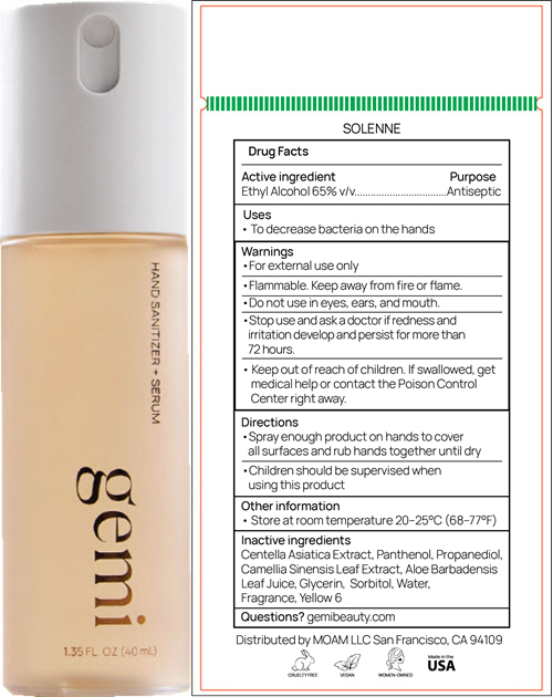 Hand Sanitizer Plus Serum Solenne Product Label